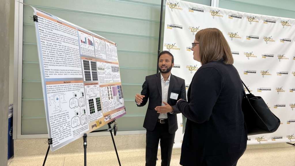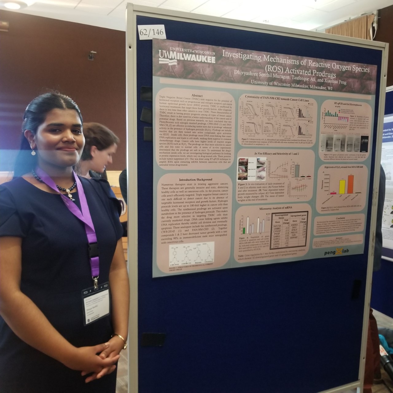 Our Undergraduate research student Dhivyashree Senthil Murugan with her poster at UW-Whitewater on April 22nd & UW-Milwaukee on 29th.