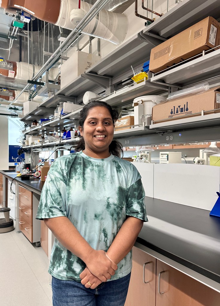 After earning my undergraduate degree from the University of Ruhuna in Sri Lanka, my path to becoming a research scientist in chemistry led me to UWM. During the first half of my undergraduate studies, I have studied biology, molecular genetics, microbiology along with chemistry and I was constantly fascinated by the cellular molecules and mechanisms and wanted to incorporate concepts I studied in chemistry with biology. And I always found it amazing how structure and mechanisms in biological chemistry resonate with the organic chemistry I learnt. I think that is where my penchant for biological chemistry and organic chemistry arises. So, I chose University of Wisconsin Milwaukee and Dr. Peng’s research group because, they take on utilizing synthetic organic chemistry to discover effective anti-cancer drugs and the related studies on cellular mechanisms unites organic chemistry and biological chemistry. The way Dr. Peng’s lab has addressed various dimensions in chemistry and the multidisciplinary research focus really captivated my interest.